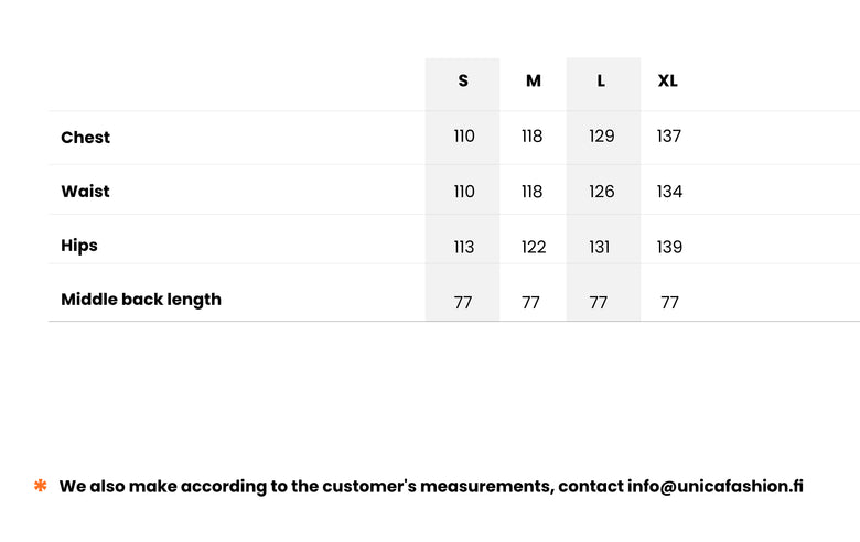 The center back length of the coat is 77cm
