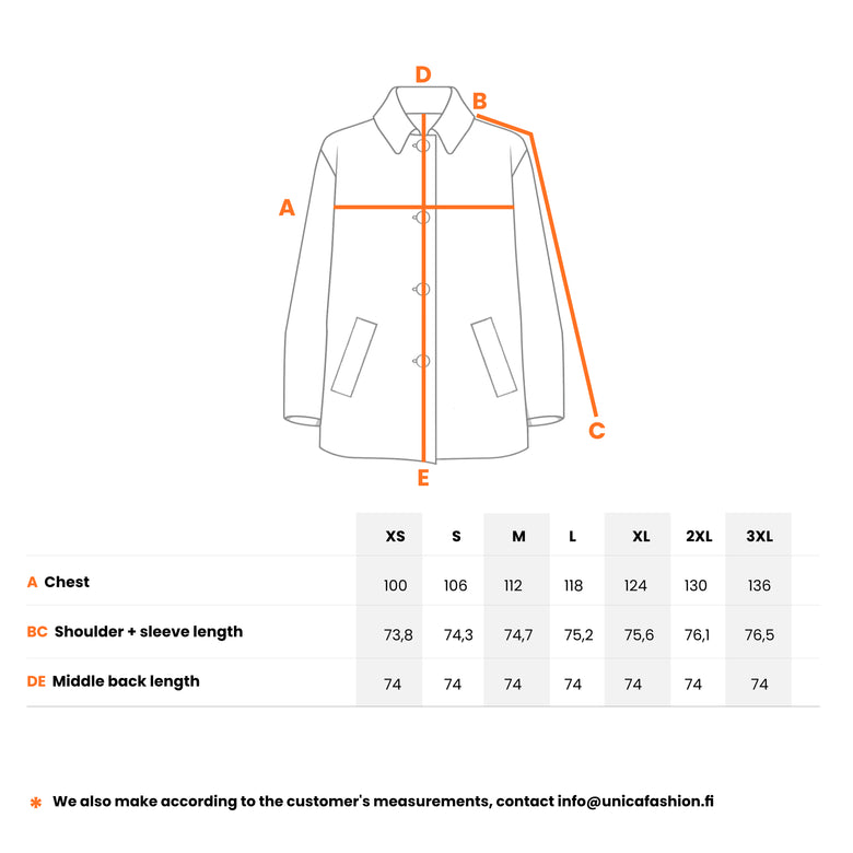 The light jacket is made of boiled wool. Boiled wool is a nice sturdy felted wool fabric with a little elasticity. Known for its versatility and durability, boiled wool is a material that adapts to various uses, becoming an essential element for those seeking quality and comfort. Felting gives the wool a personal look. The jacket has a wide collar and side pockets.